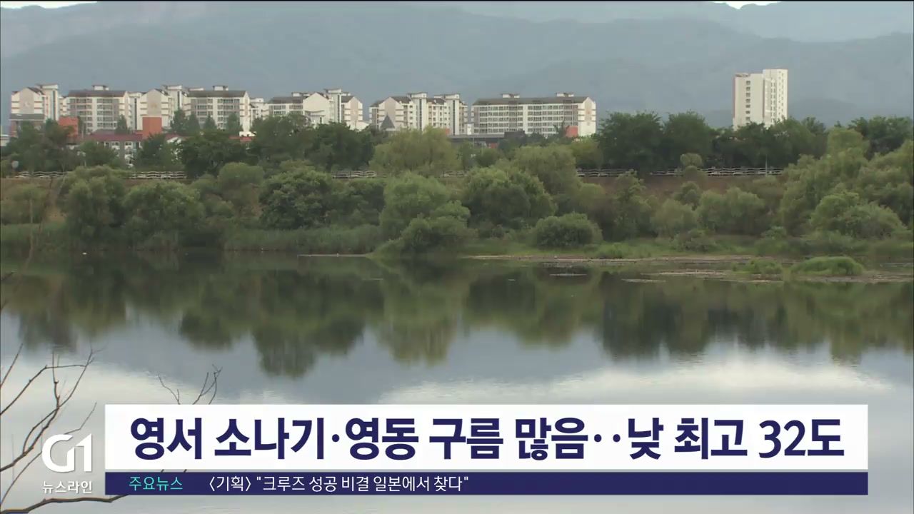 오늘 영서 지역은 대체로 흐린 가운데 곳에 따라 소나기가 내리겠고, 영동 지역은 구름 많은 날씨를 보이겠습니다.