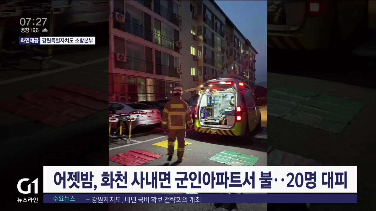 어젯밤, 화천 사내면 군인아파트서 불..20명 대피