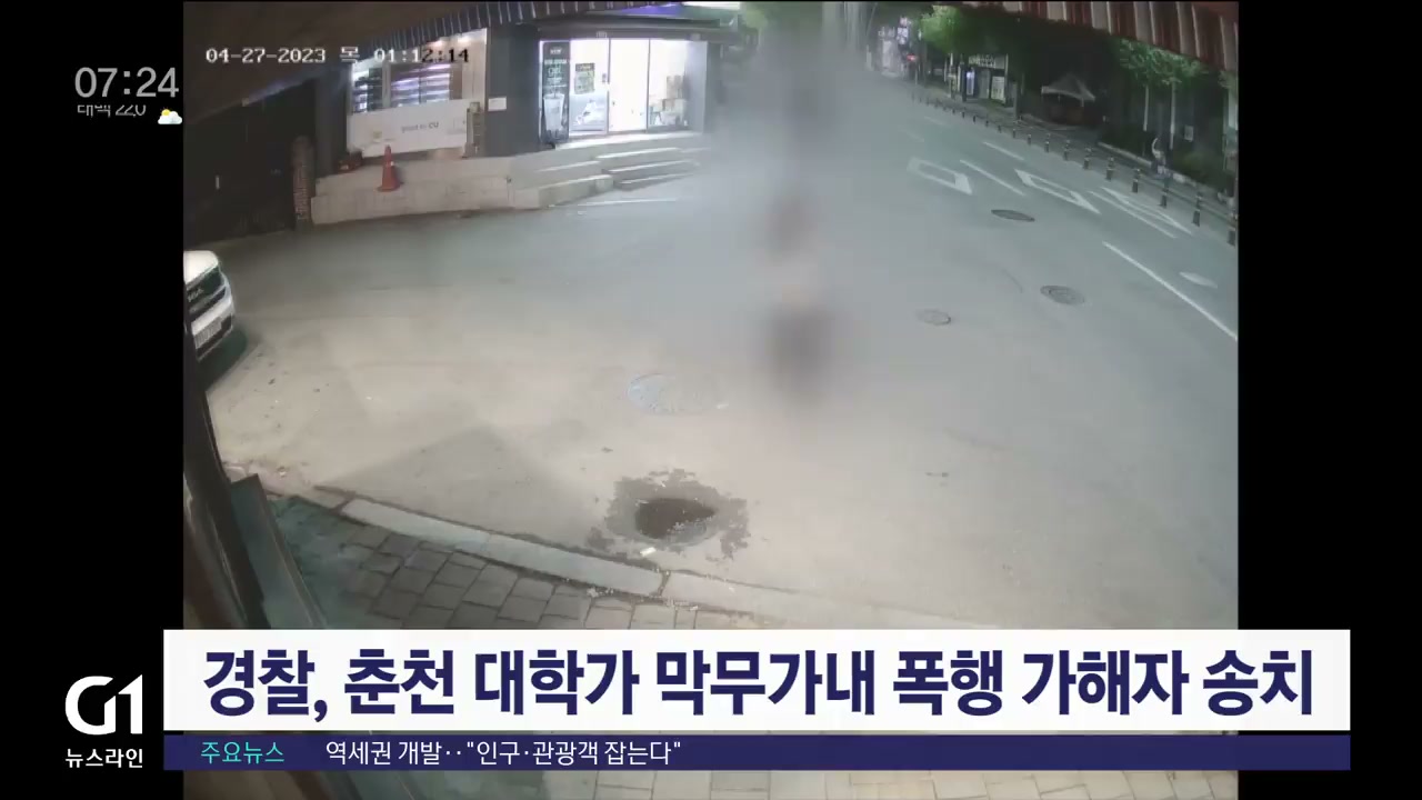 지난 4월 G1뉴스에서 보도한 춘천 대학가 막무가내 폭행건과 관련해, 경찰이 폭행 가해자를 검찰에 넘겼습니다.