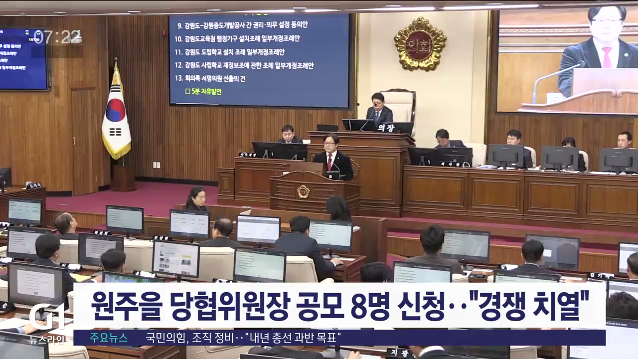 이로써 모두 8명이 경쟁을 벌이게 됐는데, 조강특위는 면접 심사 등을 거쳐 늦어도 8월 초에는 원주을 당협위원장을 선출할 계획입니다.