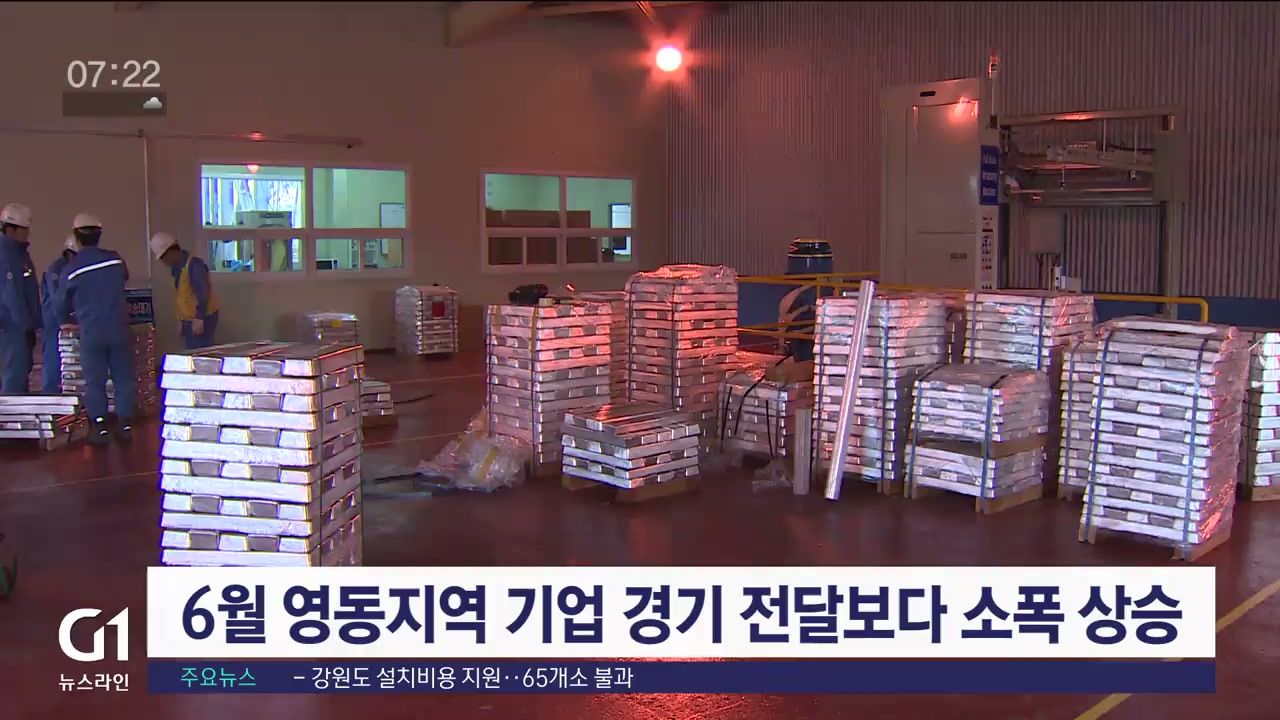 6월 영동지역 기업경기조사 결과 업황실적이 한 달 전보다 소폭 오른 것으로 조사됐습니다.