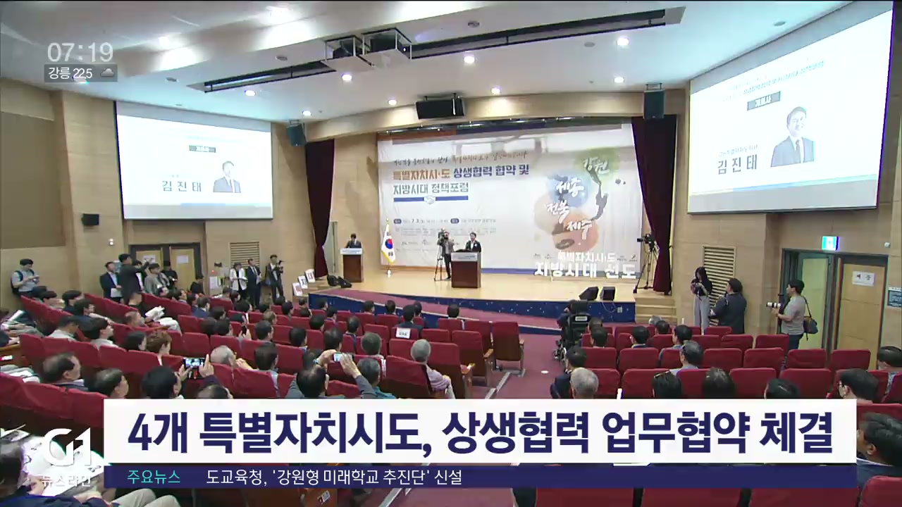 강원을 비롯한 제주, 세종, 전북 등 4개 특별자치시도가 어제(3일) 국회에서 상생협력 체계 구축을 위한 업무협약을 체결했습니다.