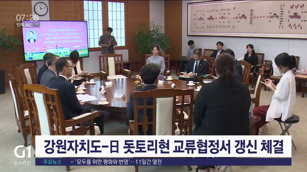 강원특별자치도와 교류 중인 일본 돗토리현 대표단이 특별자치도 출범과 자매결연 20주년을 기념해 도를 방문했습니다.