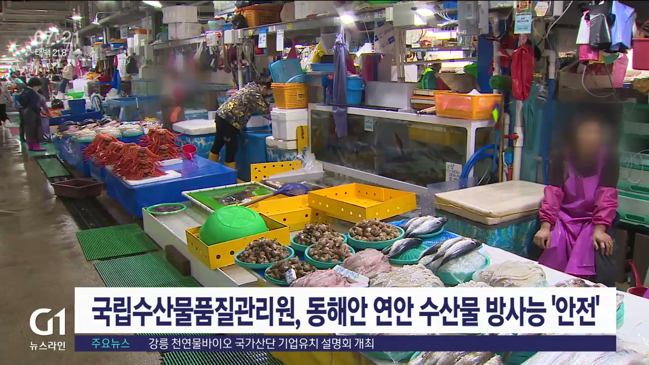 속초와 고성, 동해, 강릉 등 도내 6개 시군 연안의 수산물 방사능 안전성 검사 결과 모두 적합한 것으로 조사됐습니다.