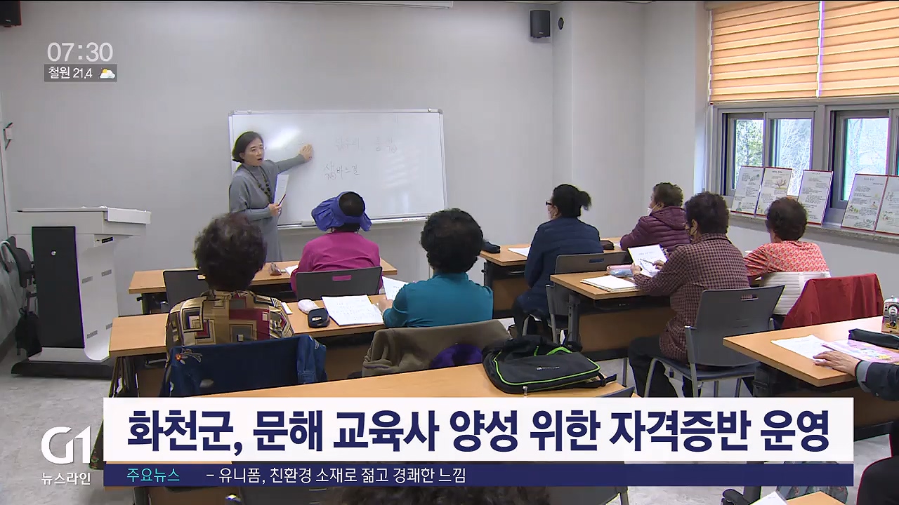 화천군, 문해 교육사 양성 위한 자격증반 운영