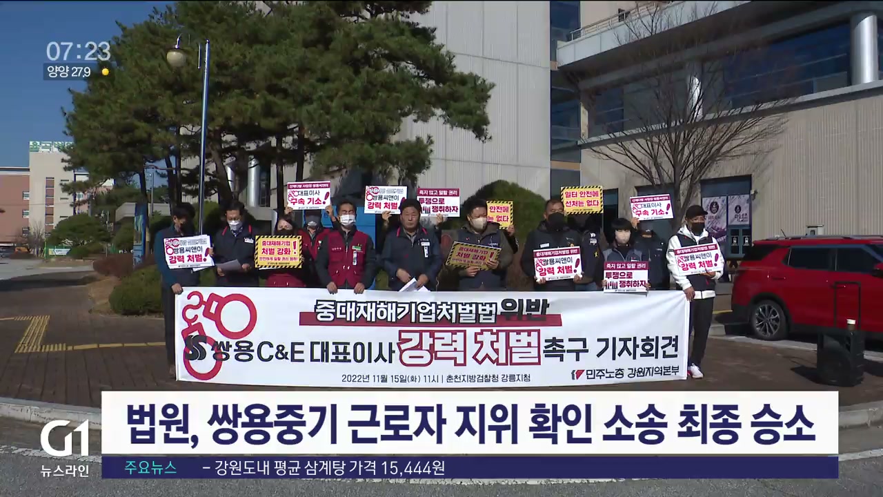 지난 1998년 쌍용씨앤이(C&E) 본사에서 분리돼 하도급을 통해 중장비 업무를 도맡아 온 쌍용동해중기전문 소속 노동자들의 불법 파견을 인정한 판결이 대법원에서 확정됐습니다.