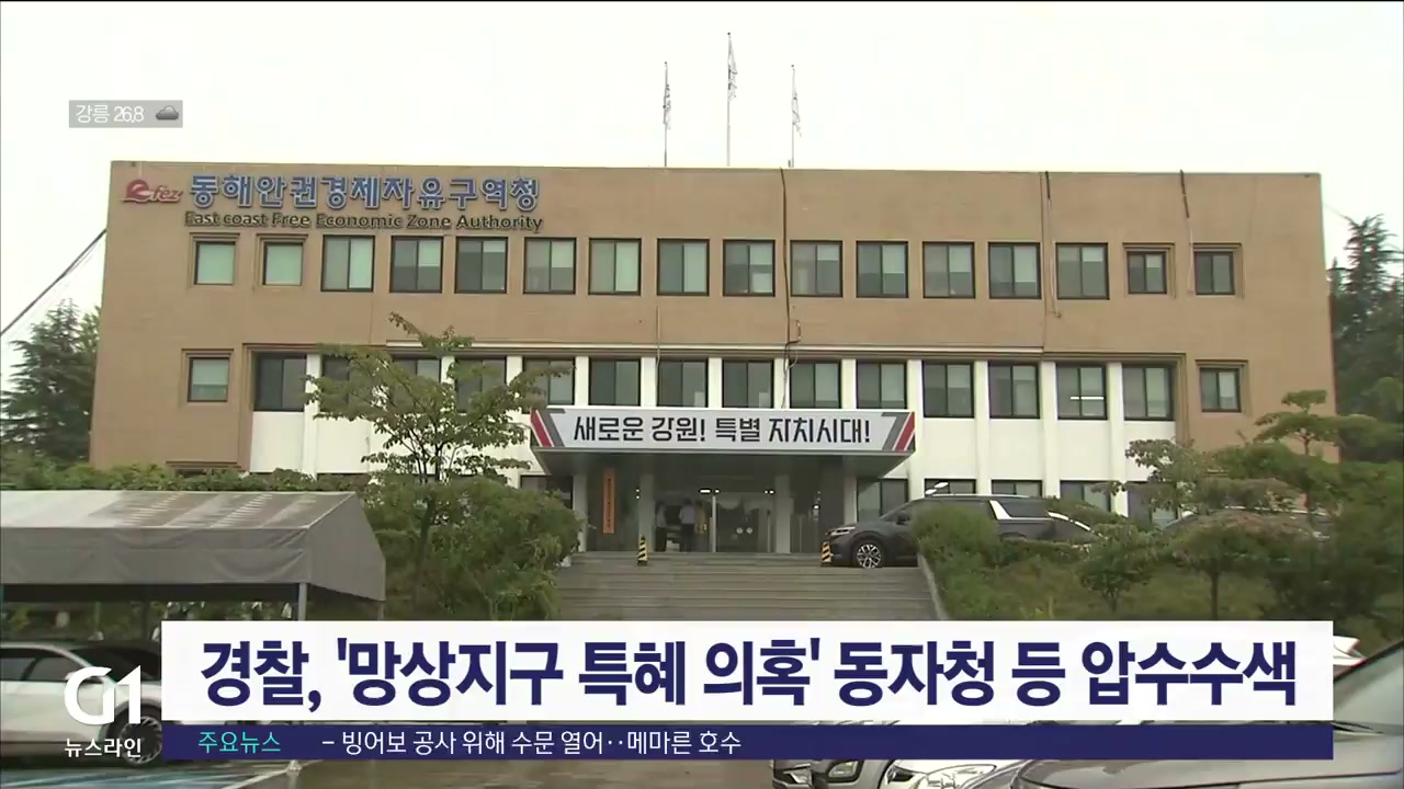 경찰이 동해 망상지구 개발사업 특혜 의혹과 관련해 동해안권경제자유구역청 사무실과 관계자 주거지 등 4곳을 어제(11일) 압수수색했습니다.