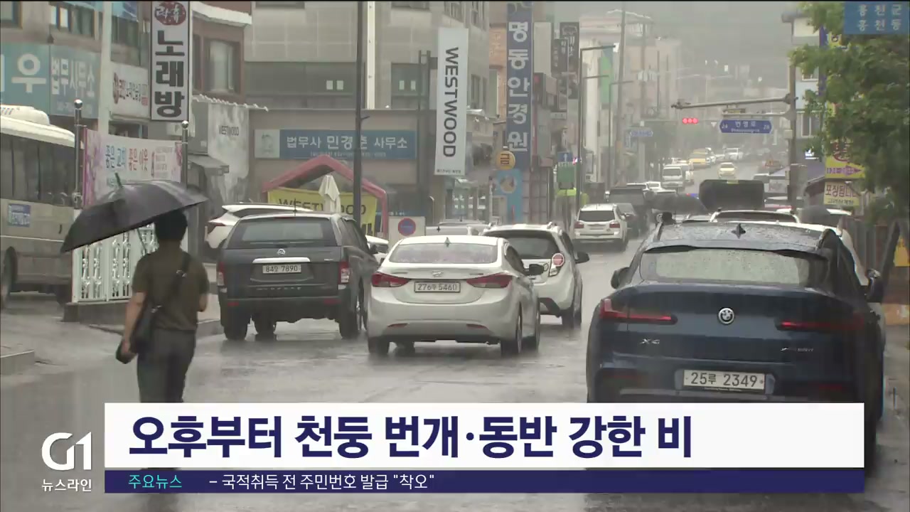강원지방기상청은 오후부터 돌풍과 천둥·번개를 동반한 시간당 30㎜에서 80㎜의 매우 강하고 많은 비가 내리는 만큼 피해가 없도록 각별히 주의해 줄 것을 당부했습니다.