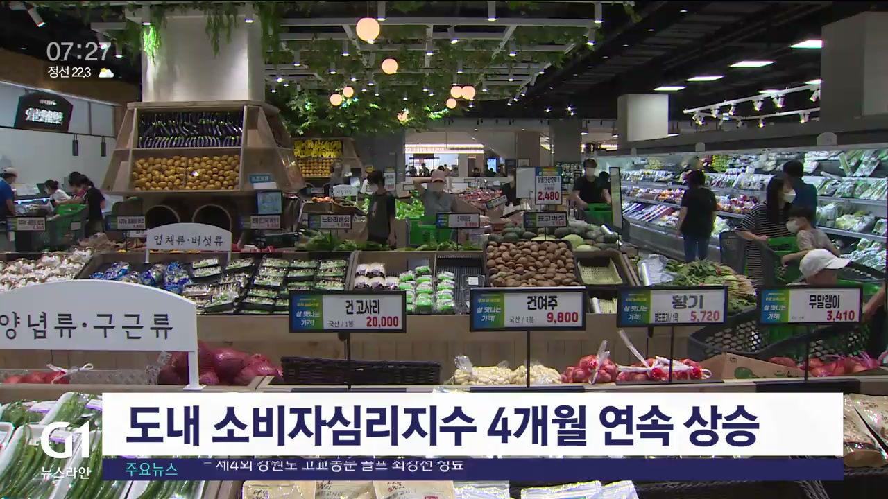 이번달 도내 소비자심리지수가 4개월 연속 상승한 것으로 나타났습니다.