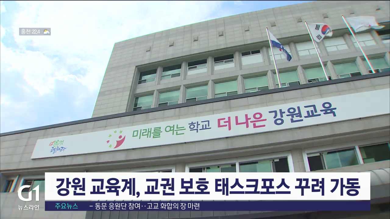 강원특별자치도교육청은 최근 교사의 극단적 선택으로 드러난 교권 침해 문제를 해결하기위해 교원 노조와 단체들과 태스크포스를 꾸린다고 밝혔습니다.