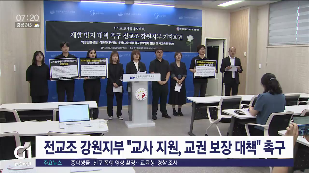 전국교직원노동조합 강원지부가 기자회견을 열고 최근 발생한 서이초 교사의 극단적 선택과 관련해 교육청의 재발 방지 대책을 촉구했습니다.