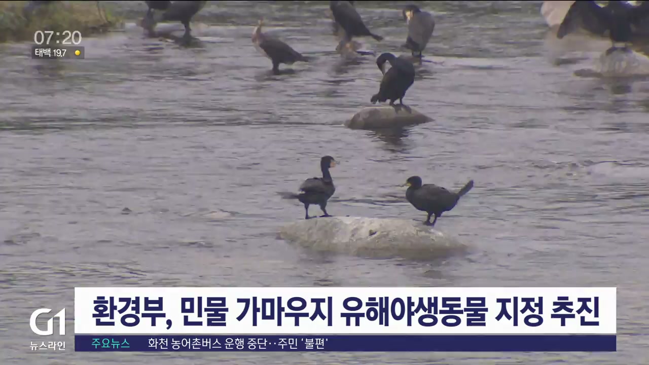 평창의 한 양식장이 민물가마우지로 피해를 받고 있다는 지난 5월 G1뉴스와 관련해, 환경부가 민물가마우지를 유해야생동물로 지정하는 방안을 추진합니다.