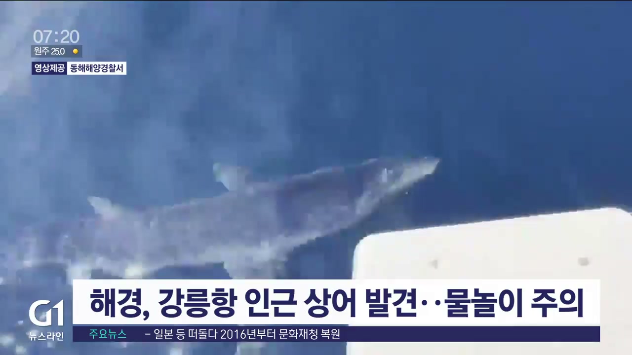 최근 동해안에서 상어가 잇따라 발견되고 있는 가운데, 강릉에서도 상어가 목격돼 해경이 순찰을 강화했습니다.
