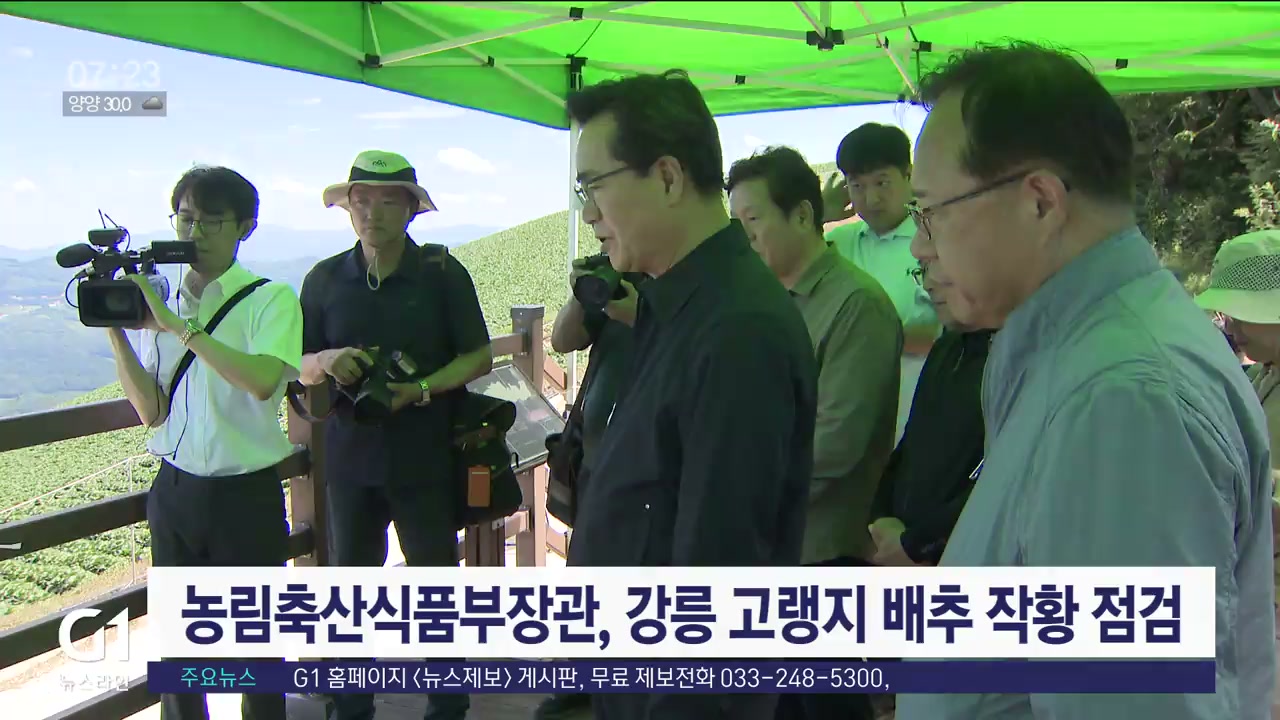 정 장관은 국내 최대 규모의 고랭지 채소 재배단지인 강릉시 왕산면 안반데기에서 올 여름 배추와 무 생육 상황을 살피고 농민들의 민원을 청취했습니다.