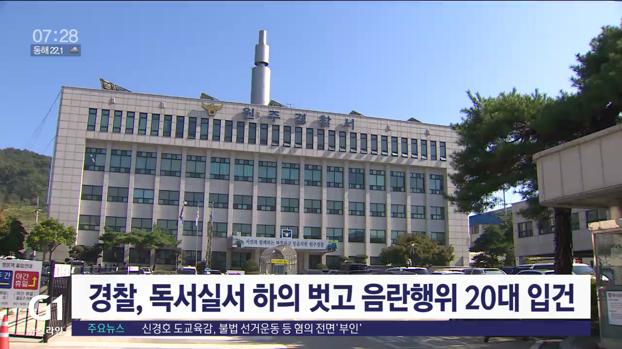 지난 6일 원주의 한 독서실에서 하의를 벗고 음란행위를 한 20대가 경찰에 붙잡혔습니다.