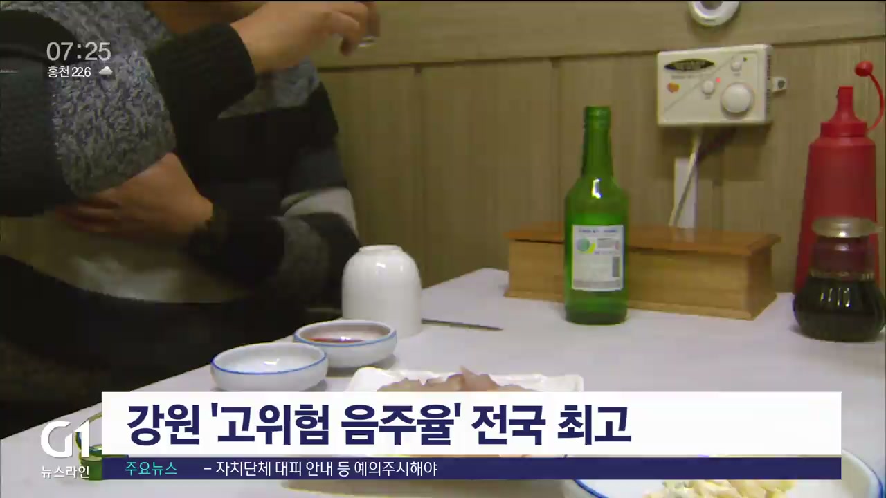 시·군 별로는 정선과 양구, 홍천, 철원이 20%를 넘어서며 고위험 음주율이 높은 기초지자체로 분류됐습니다.