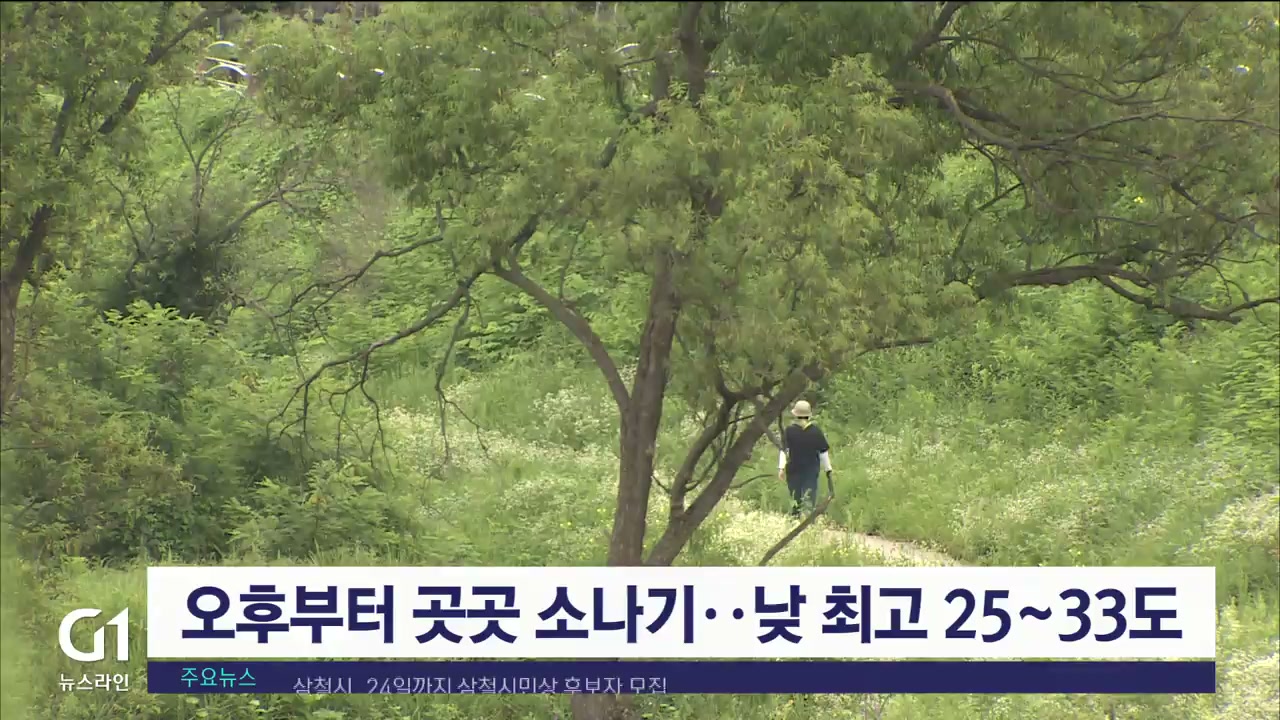 오후부터 곳곳 소나기..낮 최고 25~33도