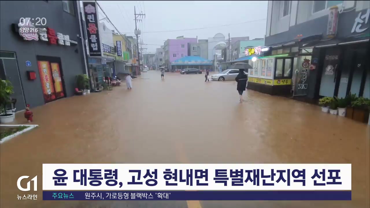 지난주 태풍 카눈의 영향으로 큰 피해를 입은 고성군 현내면이 정부의 특별재난지역으로 우선 선포됐습니다.