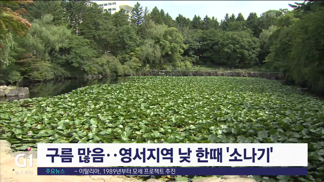 오늘 강원도는 대체로 구름이 많은 가운데, 낮 한때 영서와 산간 지역에 소나기가 내리는 곳이 있겠습니다.
