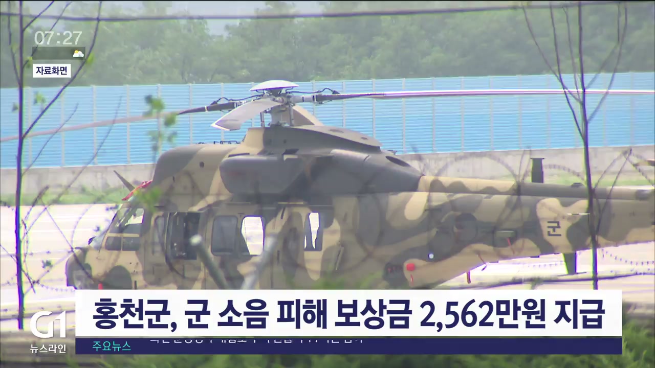 홍천군이 홍천비행장과 매봉산종합훈련장 인근 소음대책지역에 거주하는 주민에게 군 소음 피해 보상금을 지급합니다.