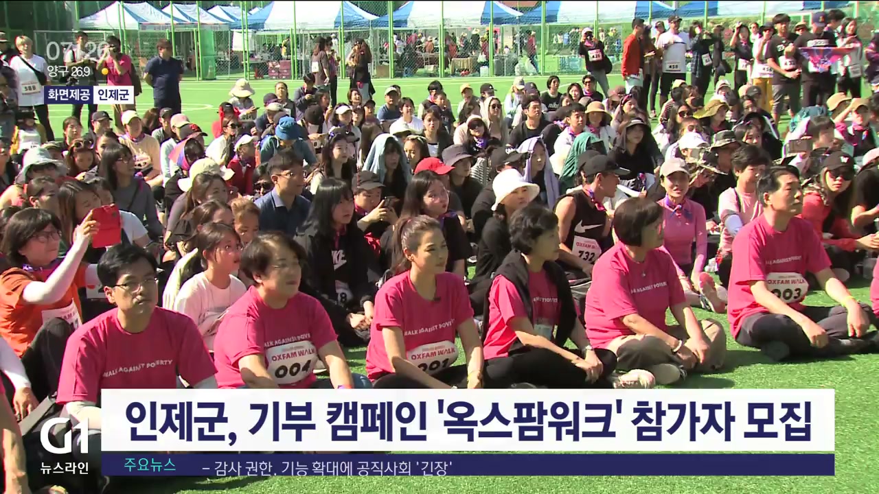 인제군이 국제구호개발기구 옥스팜 코리아와 함께 오는 10월 14일 열리는 기부 캠페인 '옥스팜워크'의 참가자를 모집합니다.
