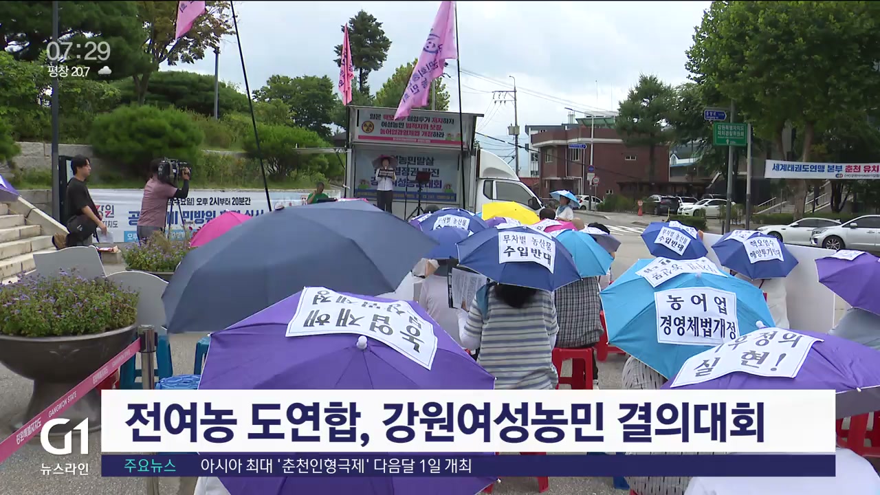전국여성농민회총연합 강원도연합이 어제(23일) 강원특별자치도청 앞에서 강원여성농민 결의대회를 열었습니다.