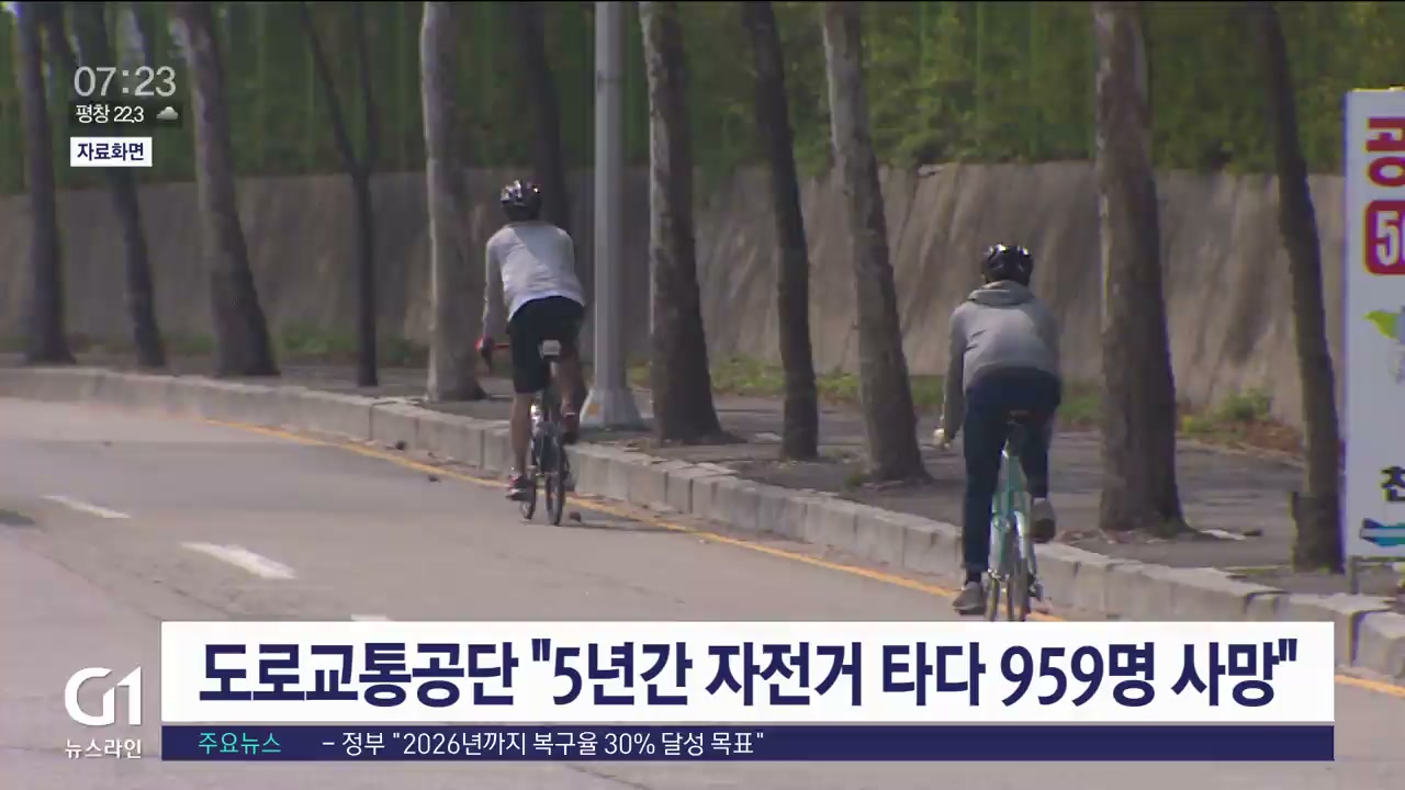 최근 5년 동안 자전거를 타다가 사망한 사람이 959명에 달하는 것으로 나타났습니다.