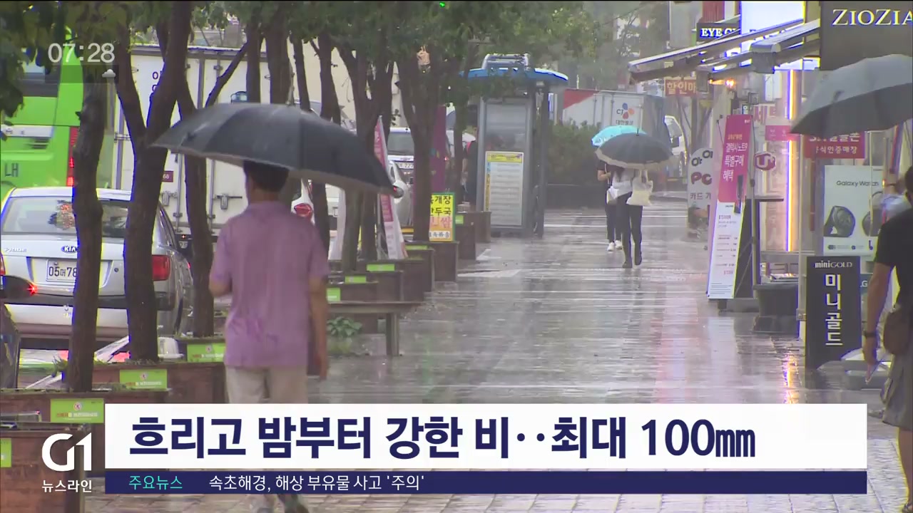 흐리고 밤부터 강한 비..최대 100mm