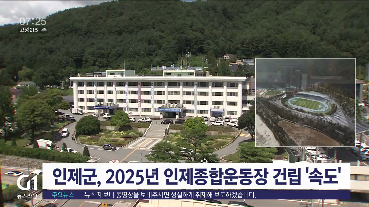 인제군이 오는 2025년까지 인제읍 남북리에 대규모 체육시설을 갖춘 인제종합운동장 건립을 추진합니다.