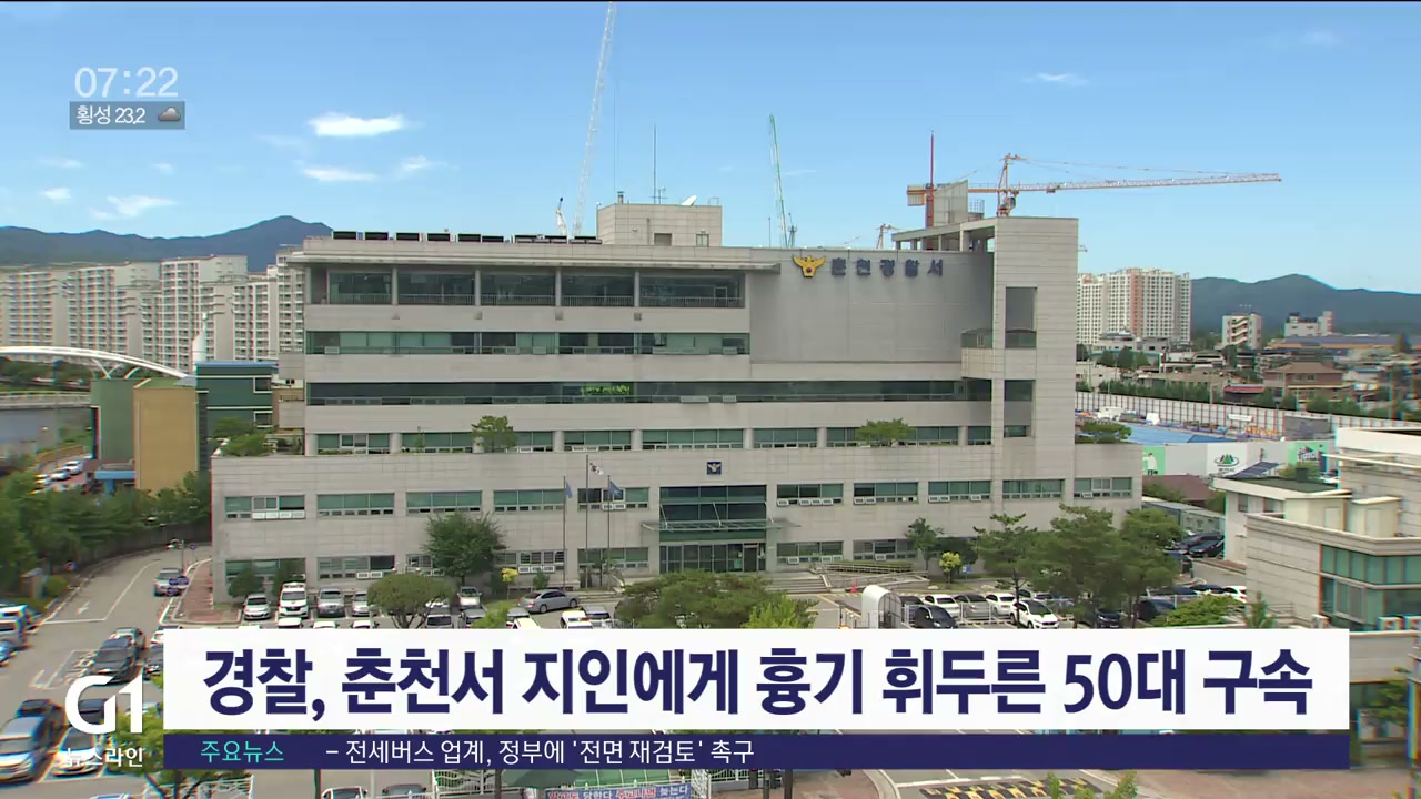 A씨는 지난 24일 오후 9시 30분쯤 춘천시 효자동의 한 아파트에서 44살 지인 B씨에게 흉기를 휘둘러 손목에 상처를 입힌 혐의를 받고 있습니다.