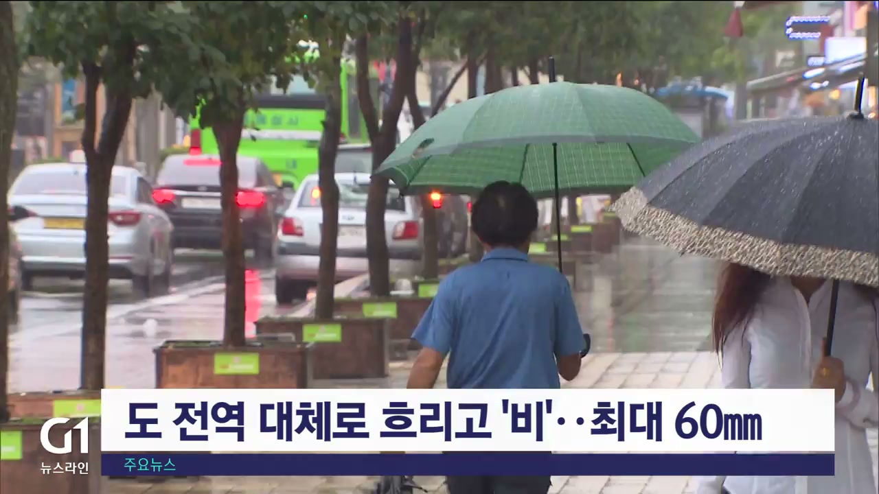 도 전역 대체로 흐리고 '비'..최대 60㎜
