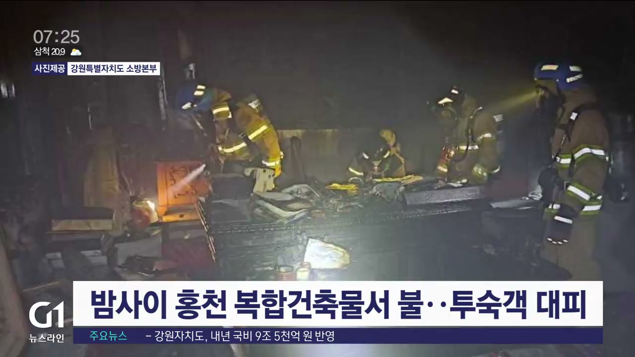 밤사이 홍천 복합건축물서 불..투숙객 대피