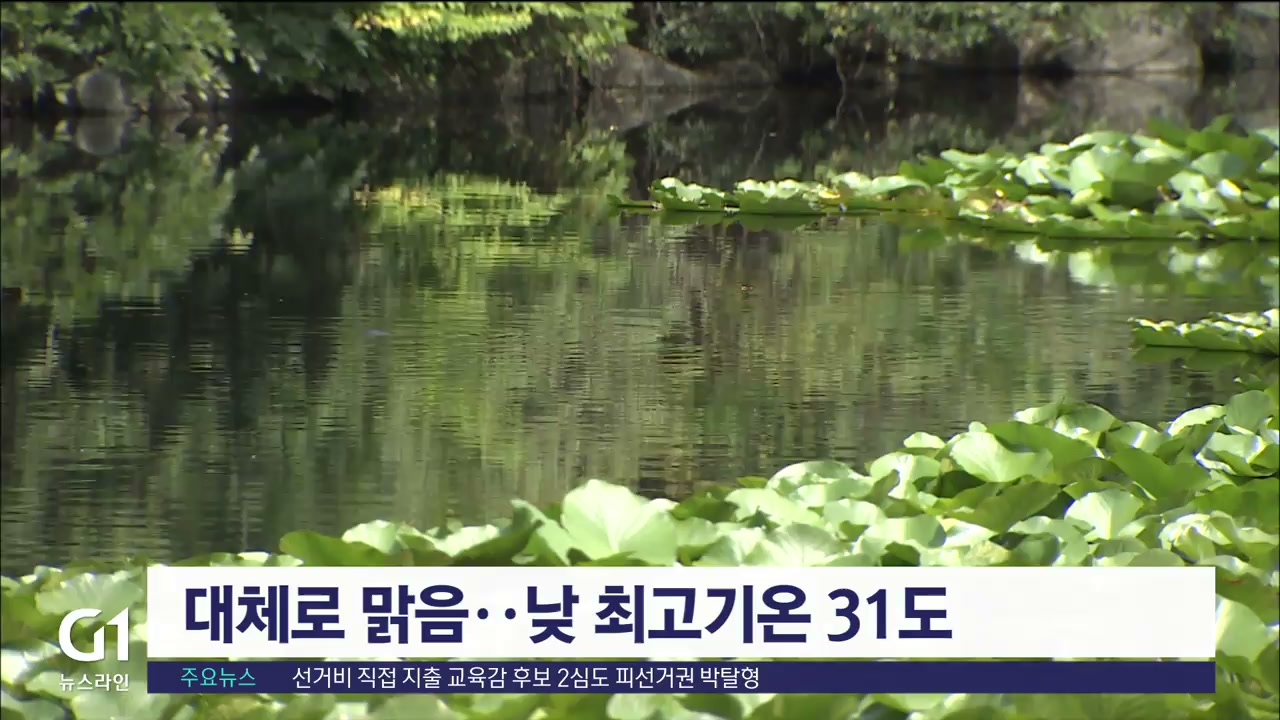 낮 최고기온은 영서지역이 29도에서 31도, 영동지역은 27도에서 30도의 분포를 보이겠습니다.
