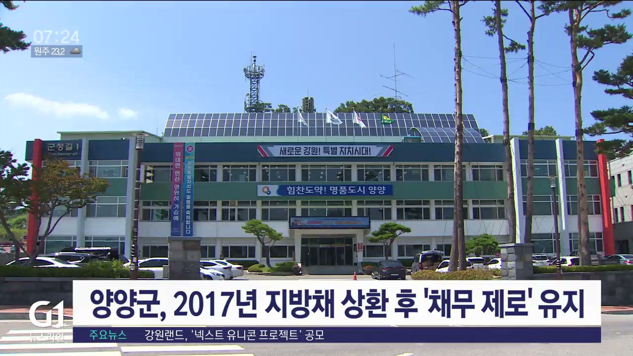 양양군, 2017년 지방채 상환 후 '채무 제로' 유지