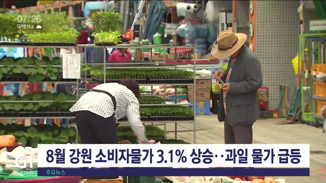 8월 강원 소비자물가 3.1% 상승..과일물가 급등