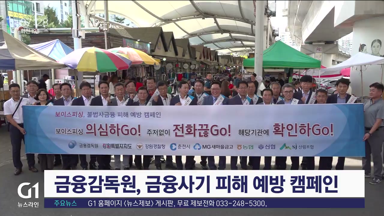 금융감독원 강원지원이 도내 주요 기관 단체와 함께 어제(12일) 춘천 풍물시장에서 금융사기 피해 예방 캠페인을 벌였습니다.