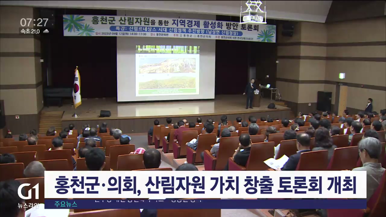 홍천군의회 연구단체 '게스트'와 홍천군이 관내 산림자원의 가치 창출과 지역경제 활성화 방안을 논의하는 토론회를 개최했습니다.