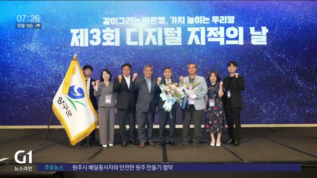 양구군이 국토부 주최 제3회 디지털 지적의 날을 맞아 지적 재조사 업무 공로에 따른 대통령 기관 표창을 수상했습니다.