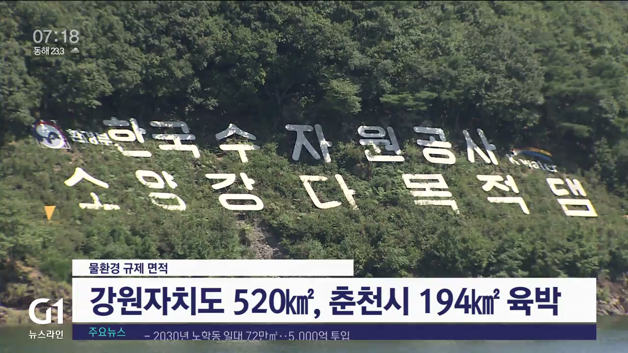 물환경 규제 면적만 강원특별자치도 전체가 520여 제곱킬로미터, 춘천시만도 194제곱킬로미터를 차지합니다.
