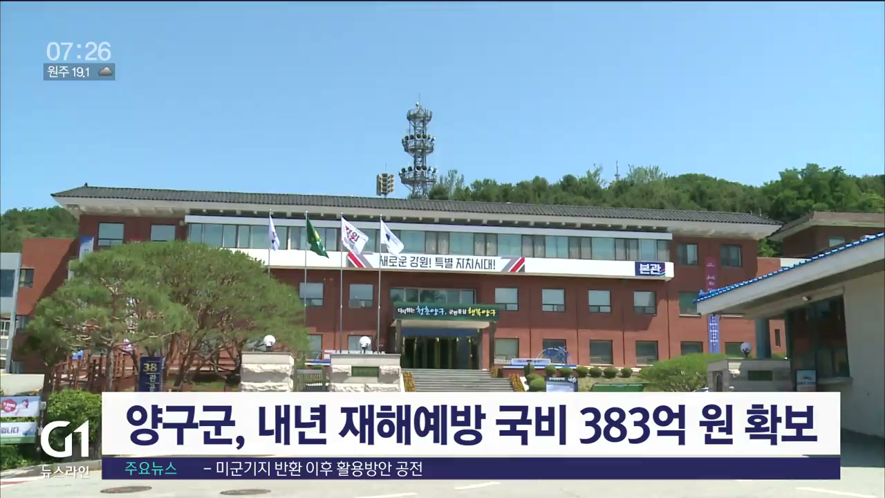 양구군이 내년도 재해예방 사업에 사용할 국비 383억 원을 확보했습니다.