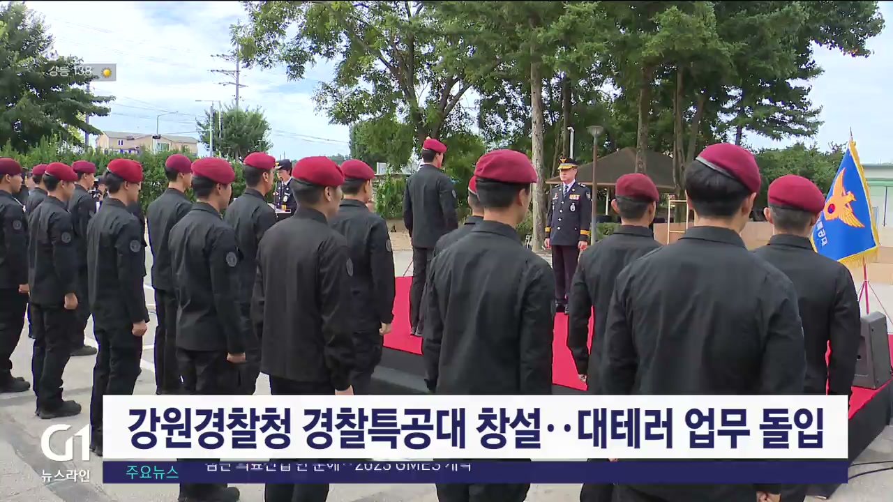 강원경찰특공대가 어제(21일) 춘천시 신북읍 임시청사에서 창설식을 갖고 본격적인 대테러 업무에 돌입했습니다.