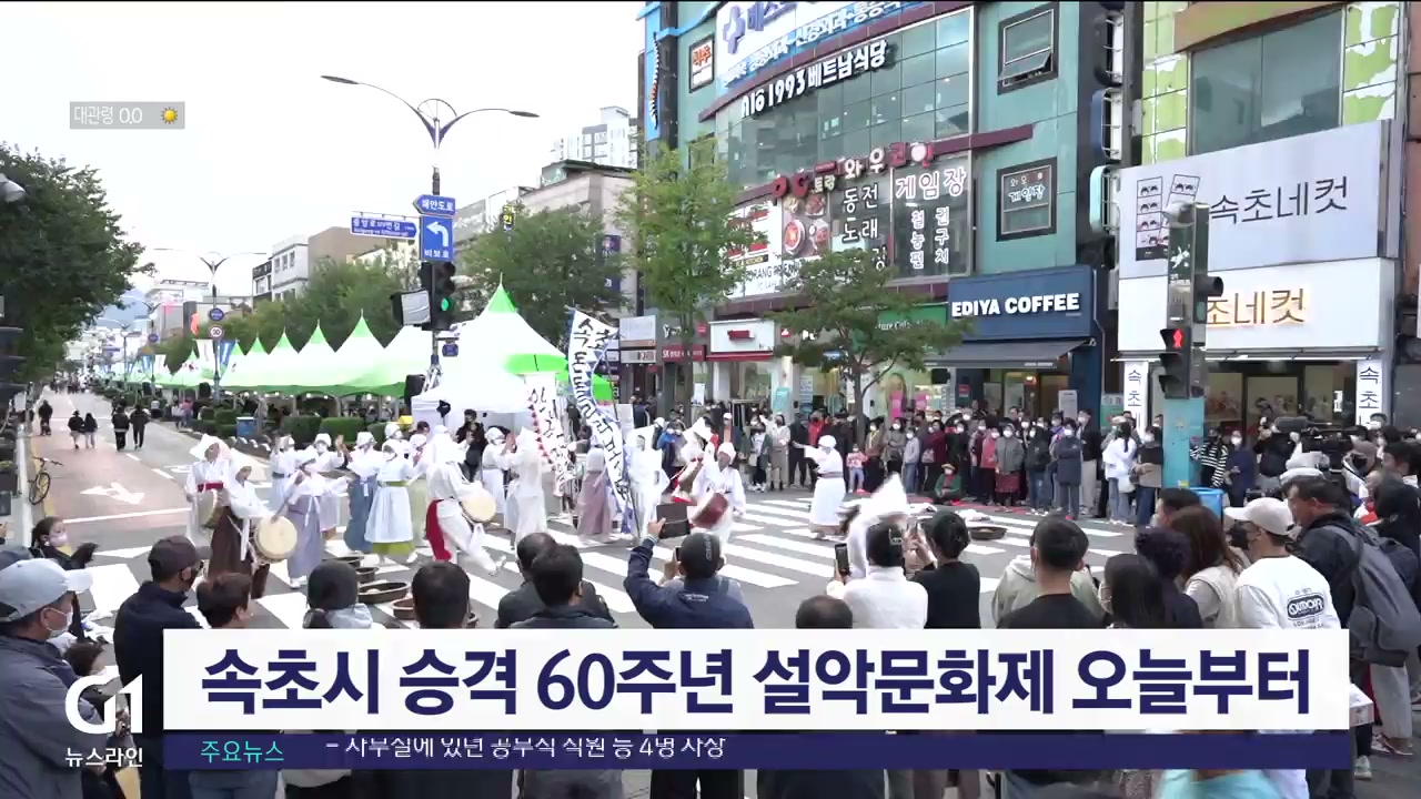 제58회 속초 설악문화제가 시 승격 60주년을 기념해 오늘(6일)부터 사흘간 열립니다.