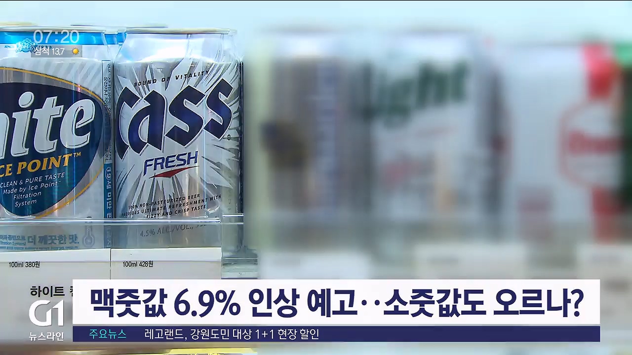 맥줏값 6.9% 인상 예고..소줏값도 오르나?
