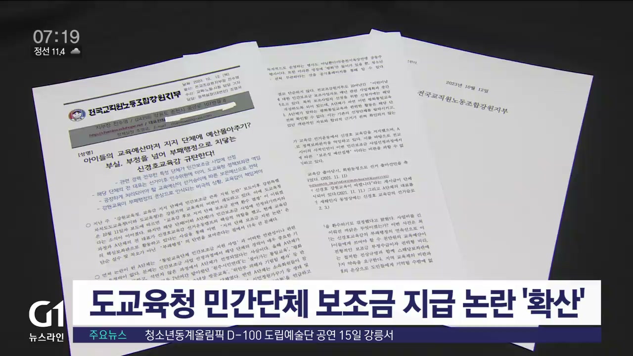 도교육청 민간단체 보조금 지급 논란 '확산'