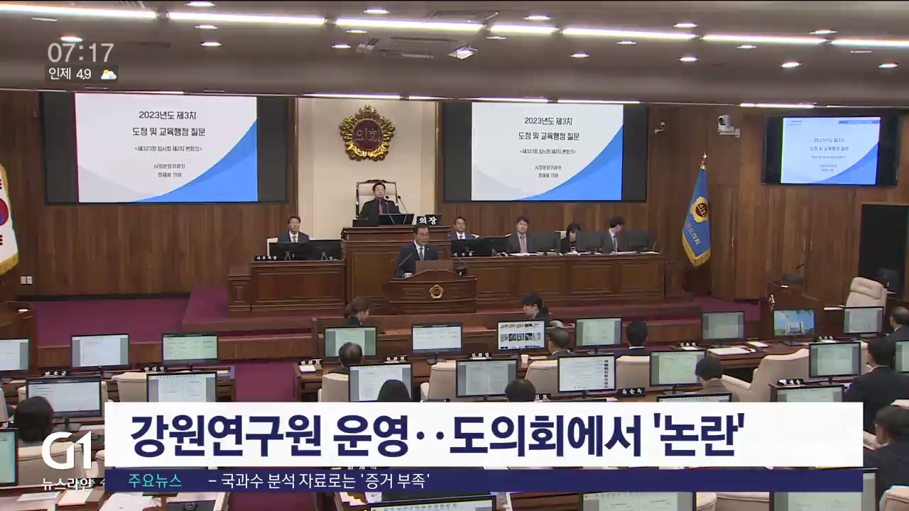 강원자치도의회, 강원연구원 인사 논란 등 질타