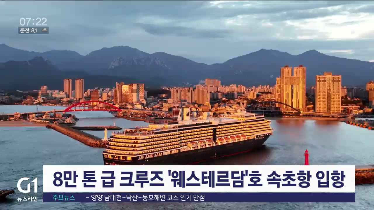 올해 속초항에 입항한 여섯번째 크루즈선인 '웨스테르담'호는 내년과 오는 2025년까지 3년 연속 속초항 기항을 계획하고 있습니다.