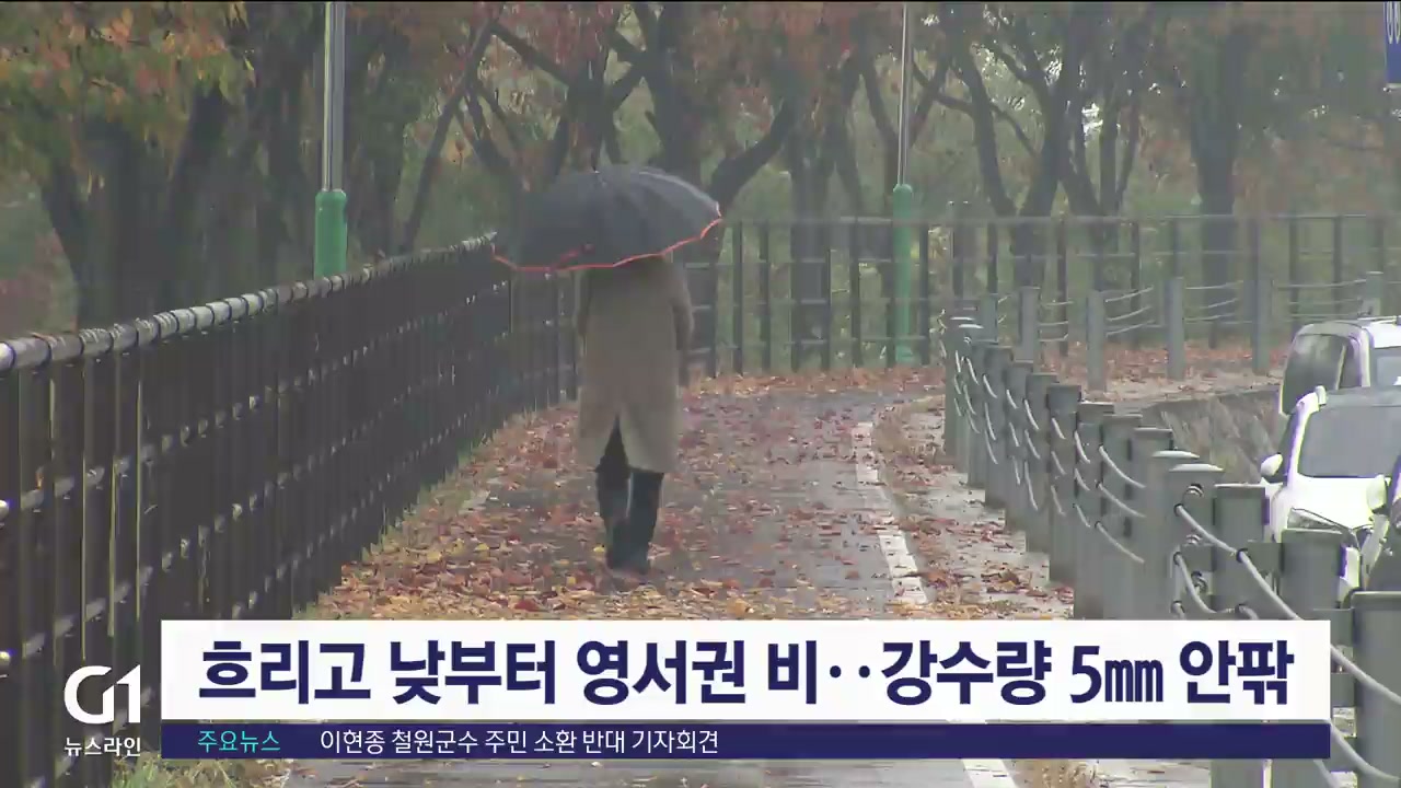 흐리고 낮부터 영서권 비..강수량 5mm 안팎