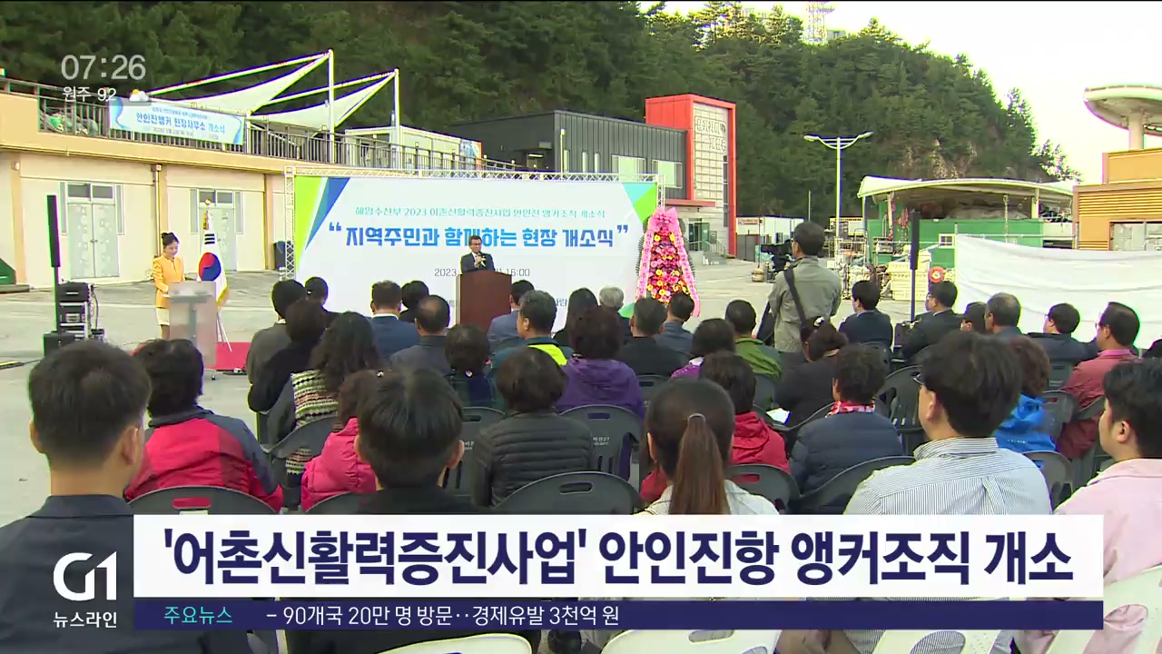 해양수산부의 '2023년 어촌신활력증진사업' 사업 대상지로 선정된 강릉 안인진항의 앵커 조직 개소식 열렸습니다.