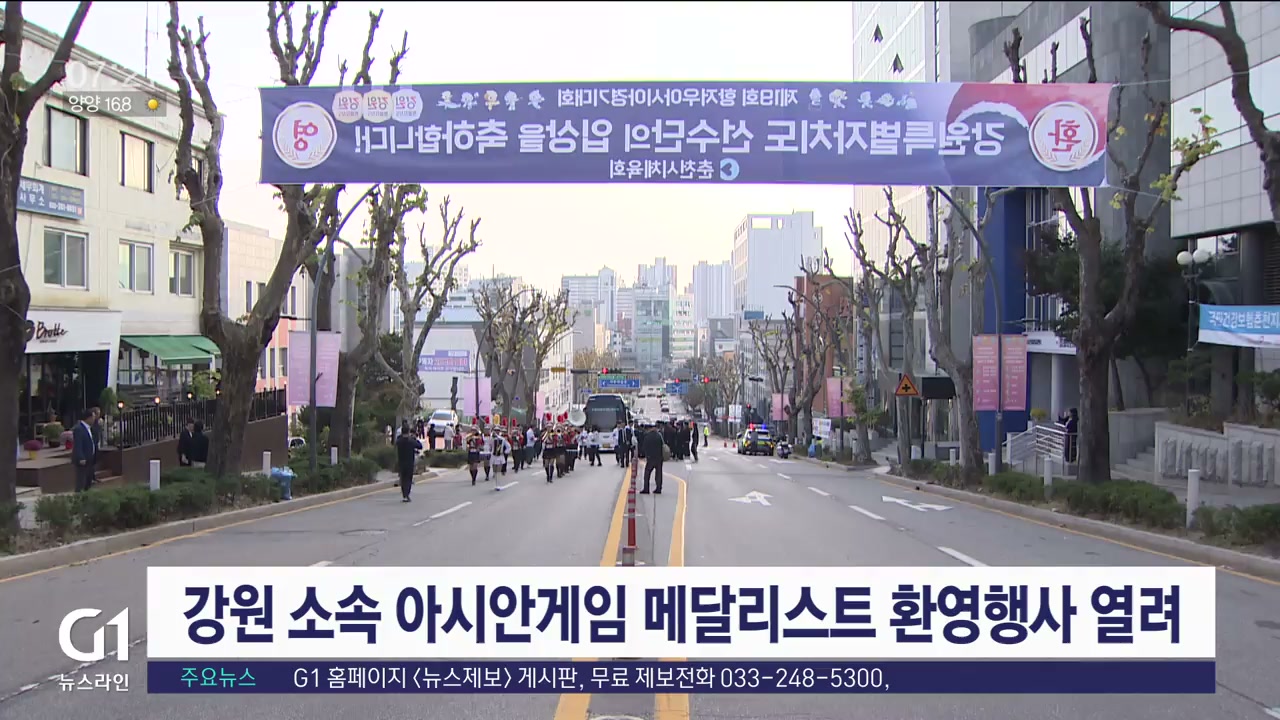 강원자치도는 항저우 아시안게임에서 입상한 도 소속 선수들을 위한 환영행사를 어제(24일) 도청 광장에서 개최했습니다.