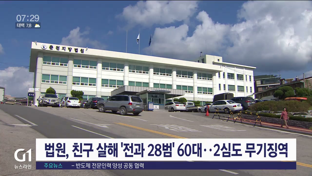 춘천서 친구 살해한 '전과 28범' 60대 2심도 무기징역
